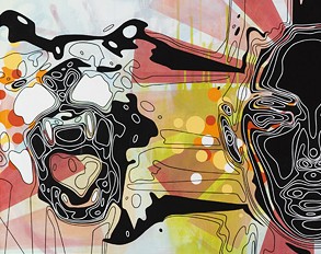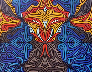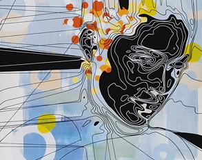 His canvas paintings are often a combination of typography, abstract painting and perfect lines. This combination comes from his creative background in graffiti, graphic design, streetart and growing up in a familie of art lovers and collecters.